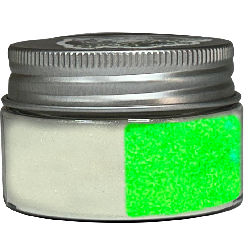 20 grams of highly pigmented glow powder, created exclusively for Fluid Art. Developed as a perfectly sized particulate, mica-based product that will not sink or fade when mixed well with pouring mediums and resin.